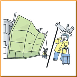 • 住宅修理・改築工事の際、強風に見舞われたため、2Fのテントを取り外したところ、降雨によって1Fに置いてあった電子部品が水濡れした。