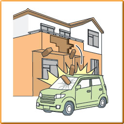 施工完了後に外壁のタイルがはがれ、近くに停まっていた自動車を壊してしまった。