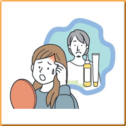 - ヘアカラー剤が頭皮へ付着し、蕁麻疹、かぶれが発症した。